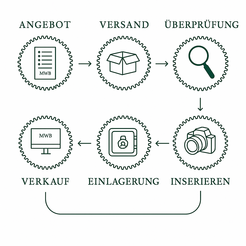 We take over the sale of your watch for you and list it in our online shop with more than 17,000 visitors per month.