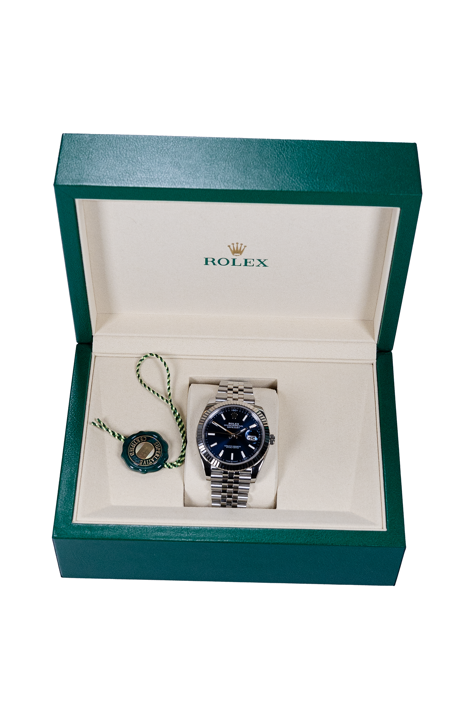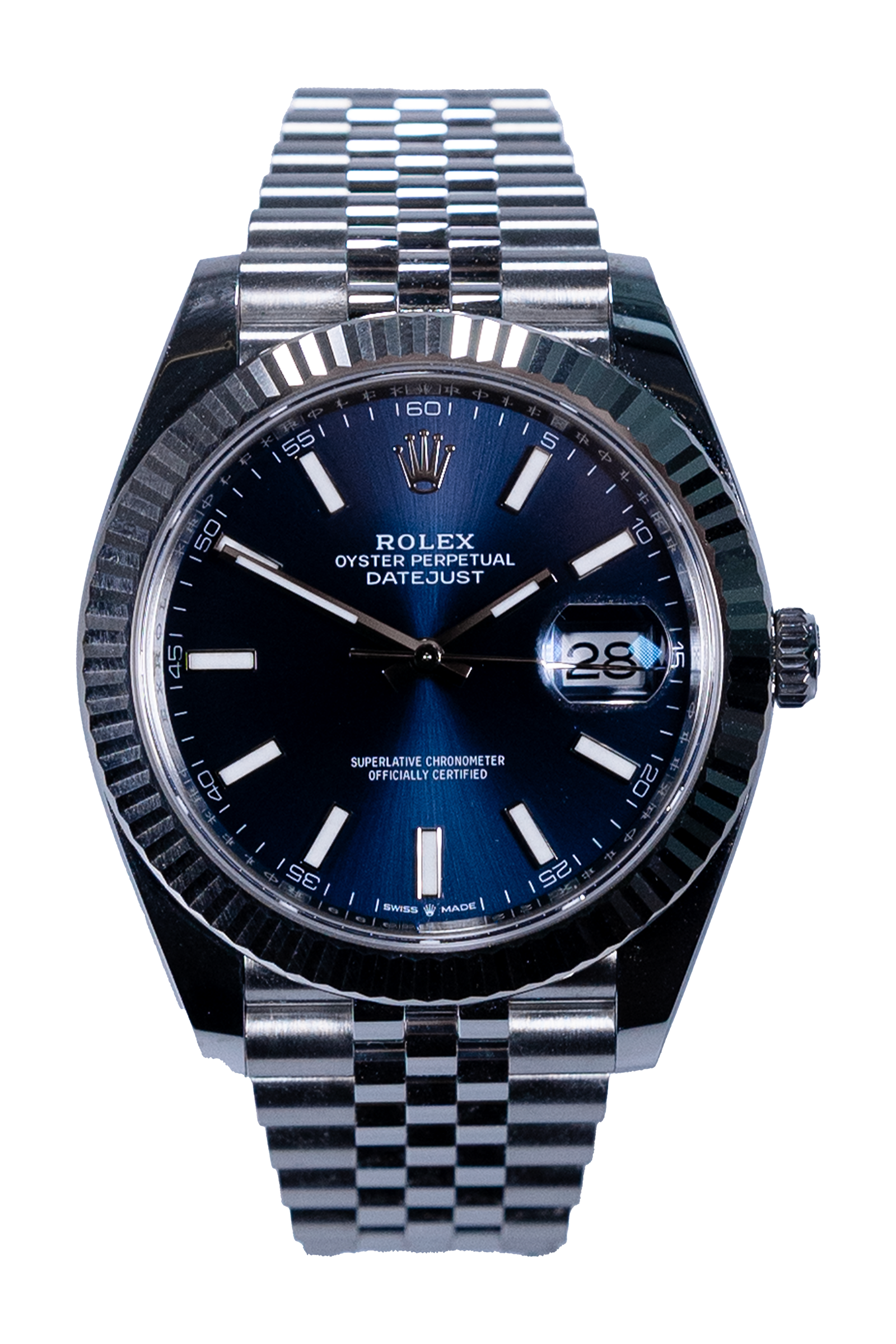 Diese Rolex Datejust 41 aus 2025 überzeugt mit einem leuchtend blauen Zifferblatt, der ikonischen geriffelten Weißgold-Lünette und dem eleganten Jubilee-Band. Das 41-mm Edelstahlgehäuse verleiht ihr eine moderne Präsenz bei zeitloser Eleganz. Die Uhr ist neu und ungetragen und wird im Fullset geliefert. Jede Uhr wird von uns ausgiebig auf Echtheit geprüft und mit einem zusätzlichen Zertifikat versehen.