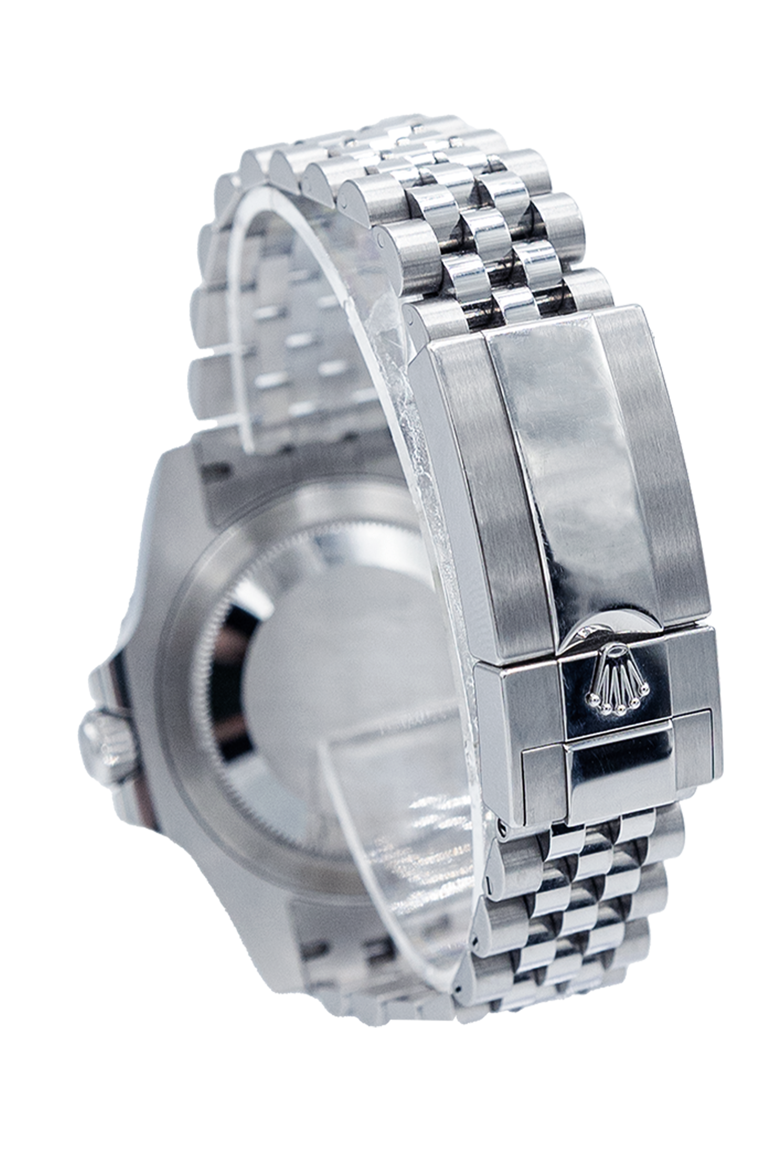 Diese Rolex GMT-Master II “Batgirl” aus 2019 kombiniert die markante blau-schwarze Cerachrom-Lünette mit dem eleganten Jubilee-Band und einem 40 mm Edelstahlgehäuse. Das schwarze Zifferblatt und die GMT-Funktion machen sie zum idealen Begleiter für Vielreisende. Die Uhr befindet sich in sehr gutem, nahezu neuwertigem Zustand und wird im kompletten Fullset, inklusive Originalbox und Papieren, geliefert – sportlich, modern und ikonisch.