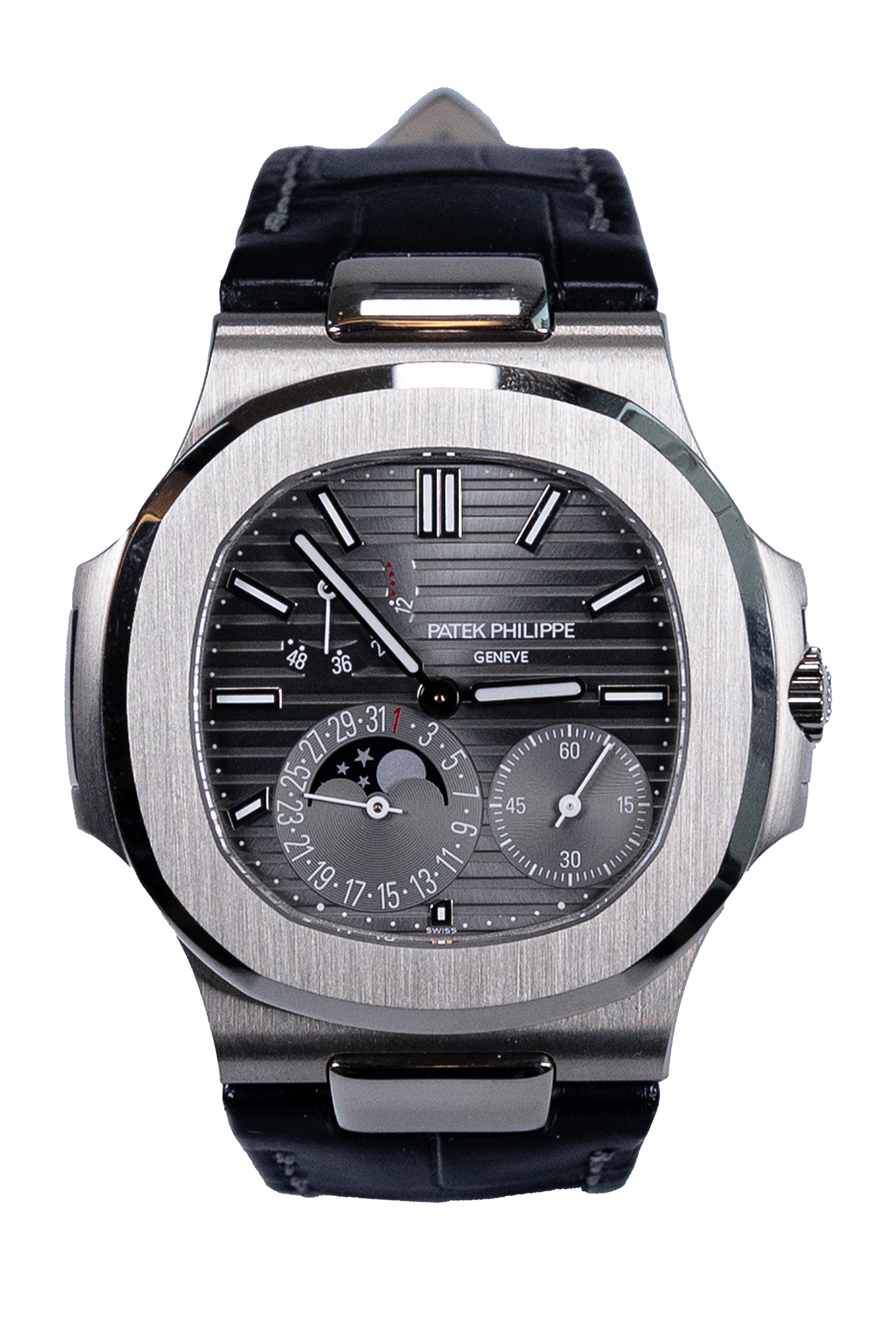 Diese Patek Philippe Nautilus 5712G-001 aus Weißgold zählt zu den begehrtesten Varianten der Linie. Mit ihrem charakteristischen 40-mm Gehäuse, dem eleganten blauen Zifferblatt mit Mondphase, Gangreserveanzeige und Datum sowie dem edlen Lederarmband verbindet sie sportliche Raffinesse mit hoher uhrmacherischer Komplexität. Die Uhr ist neu und ungetragen und wird im kompletten Fullset, inklusive Originalbox und Papieren, geliefert – ein exklusives Highlight für anspruchsvolle Sammler.