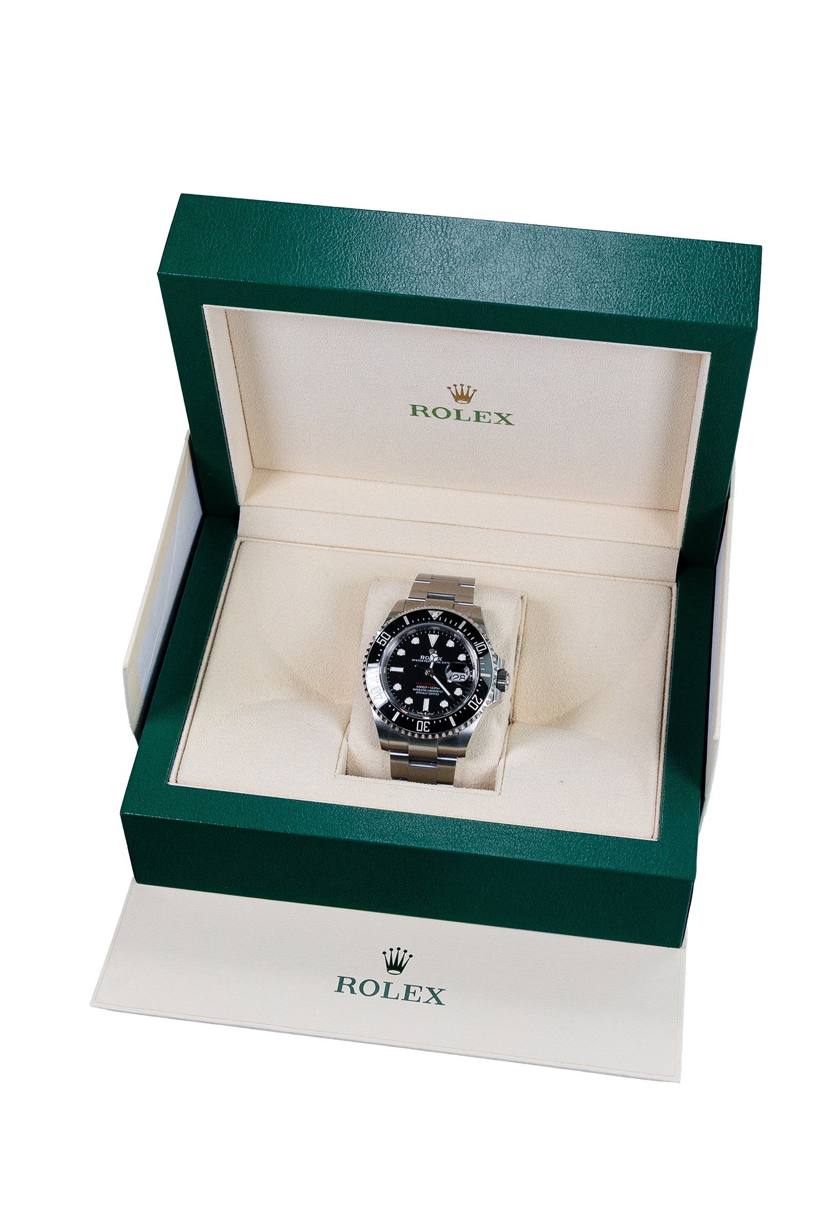 Die Rolex Sea-Dweller 126600, auch bekannt als „Red Sea-Dweller“, verbindet professionelle Tauchertechnik mit ikonischem Design. Das 42 mm Edelstahlgehäuse, das schwarze Zifferblatt mit rotem Schriftzug und die Heliumventil-Technik machen sie zur idealen Profi-Toolwatch. Dieses Exemplar aus 2023 zeigt Gebrauchsspuren, befindet sich jedoch in gutem Gesamtzustand und wird im kompletten Fullset geliefert – inklusive Box und Papieren.