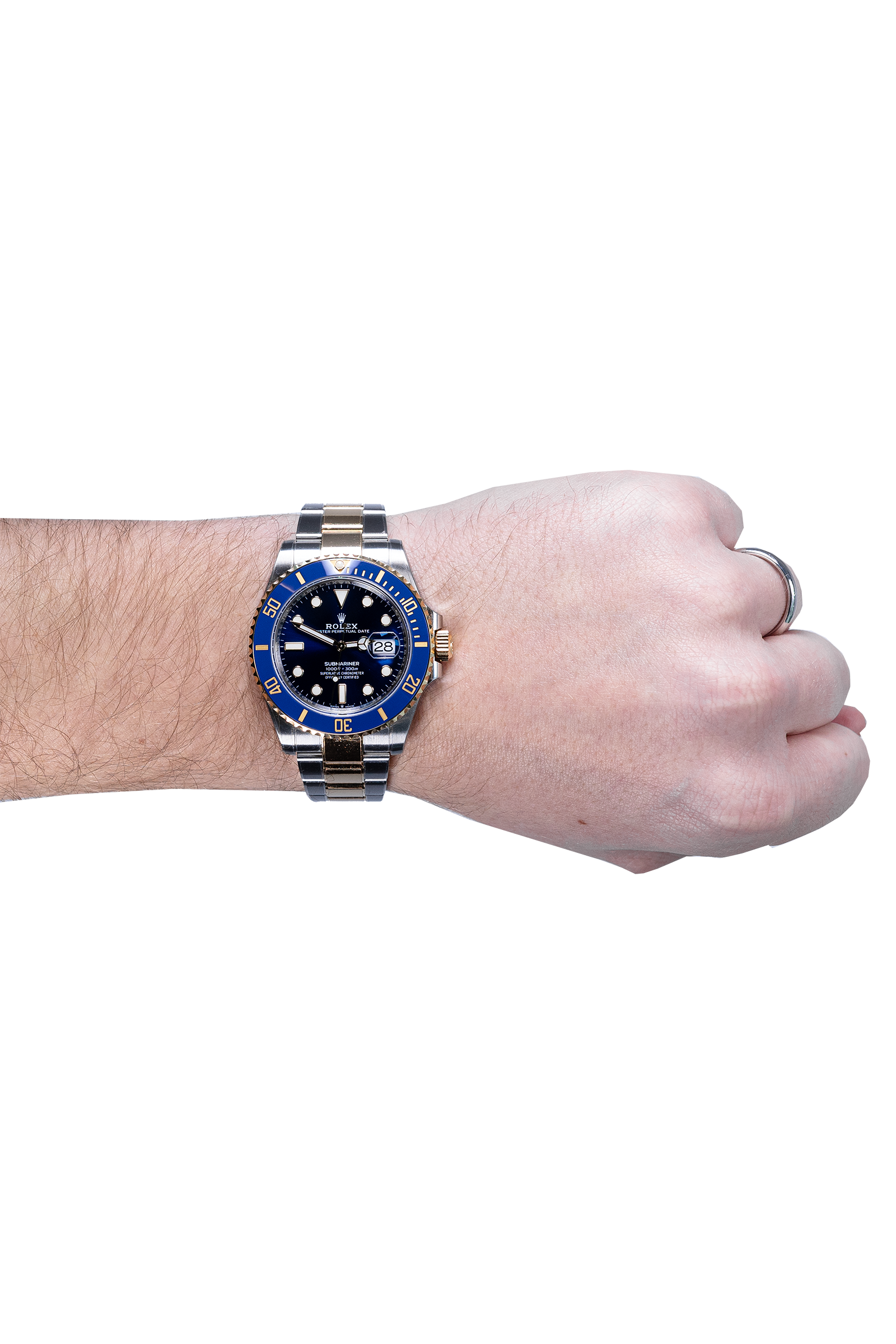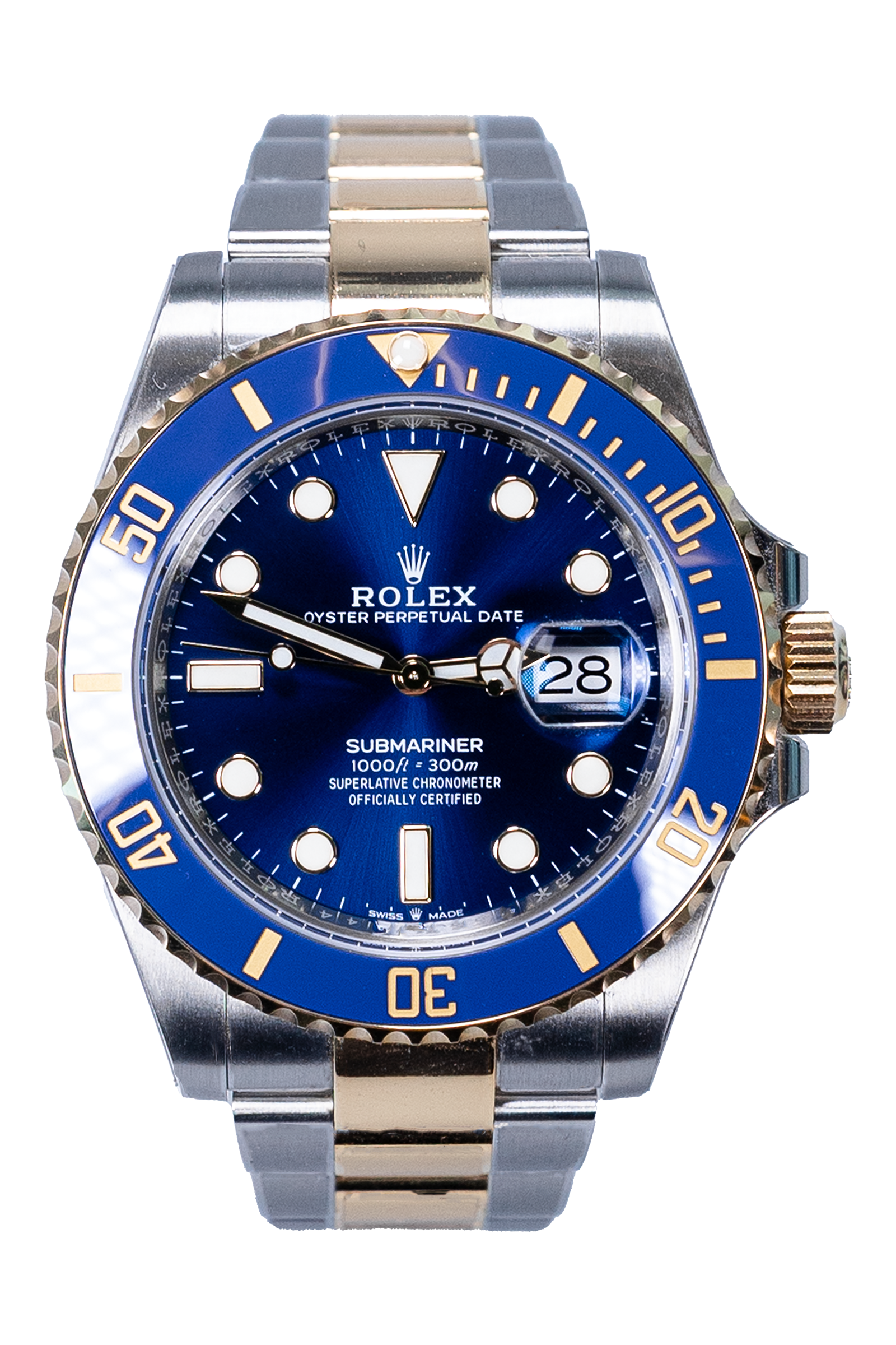 Diese Rolex Submariner Date 126613LB aus 2022 steht für sportlichen Luxus in seiner ikonischsten Form. Das Bicolor-Gehäuse aus Edelstahl und Gelbgold, kombiniert mit dem leuchtend blauen Zifferblatt und der passenden blauen Cerachrom-Lünette, verleiht der Uhr eine besonders markante Ausstrahlung. Mit 41 mm Gehäusedurchmesserbietet sie moderne Präsenz und höchsten Tragekomfort.